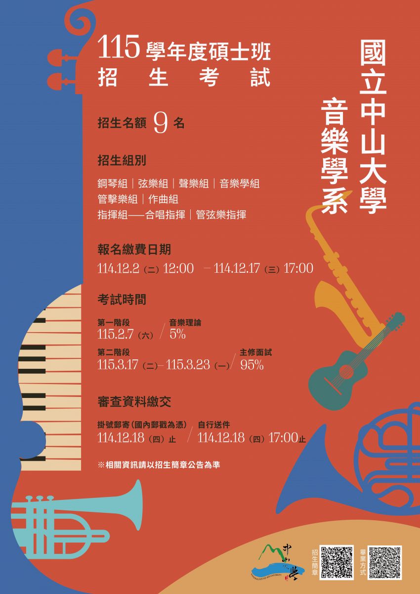 本系115學年度碩士班報名時間為12月2日~12月17日