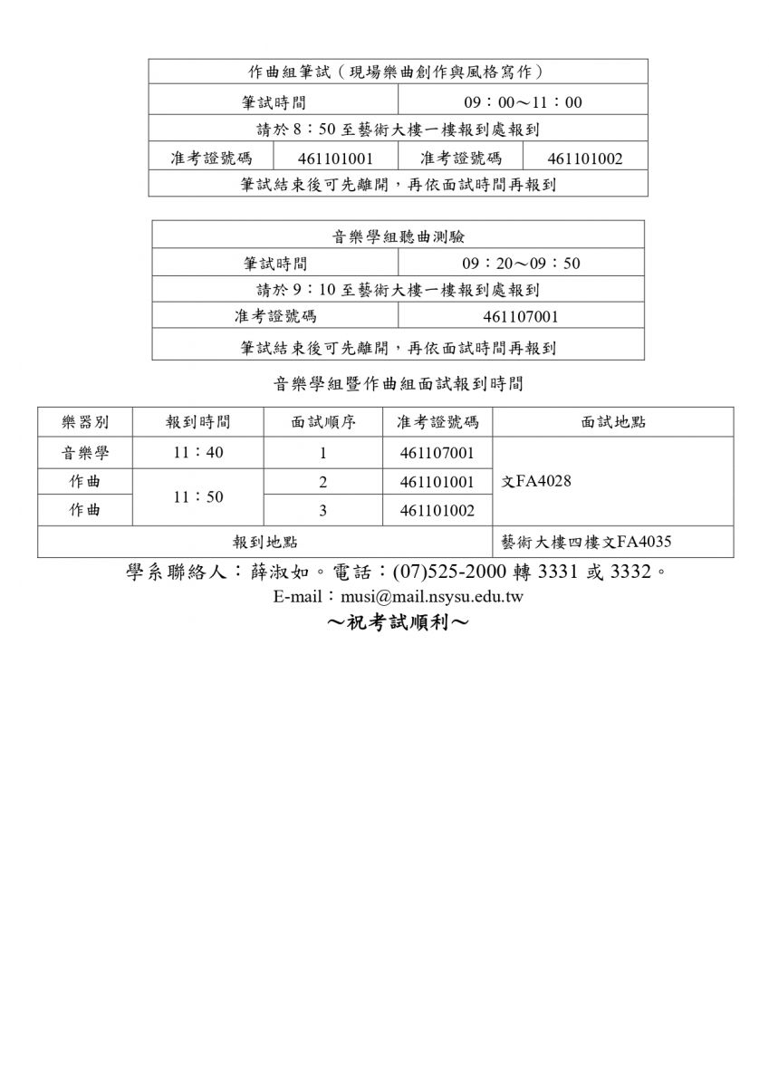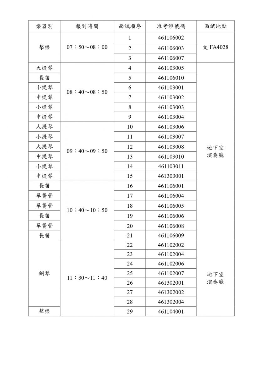 (3)主修面試當日管制考場,除考生、伴奏人員允許進入考場外,其餘禁止進入教學大樓。